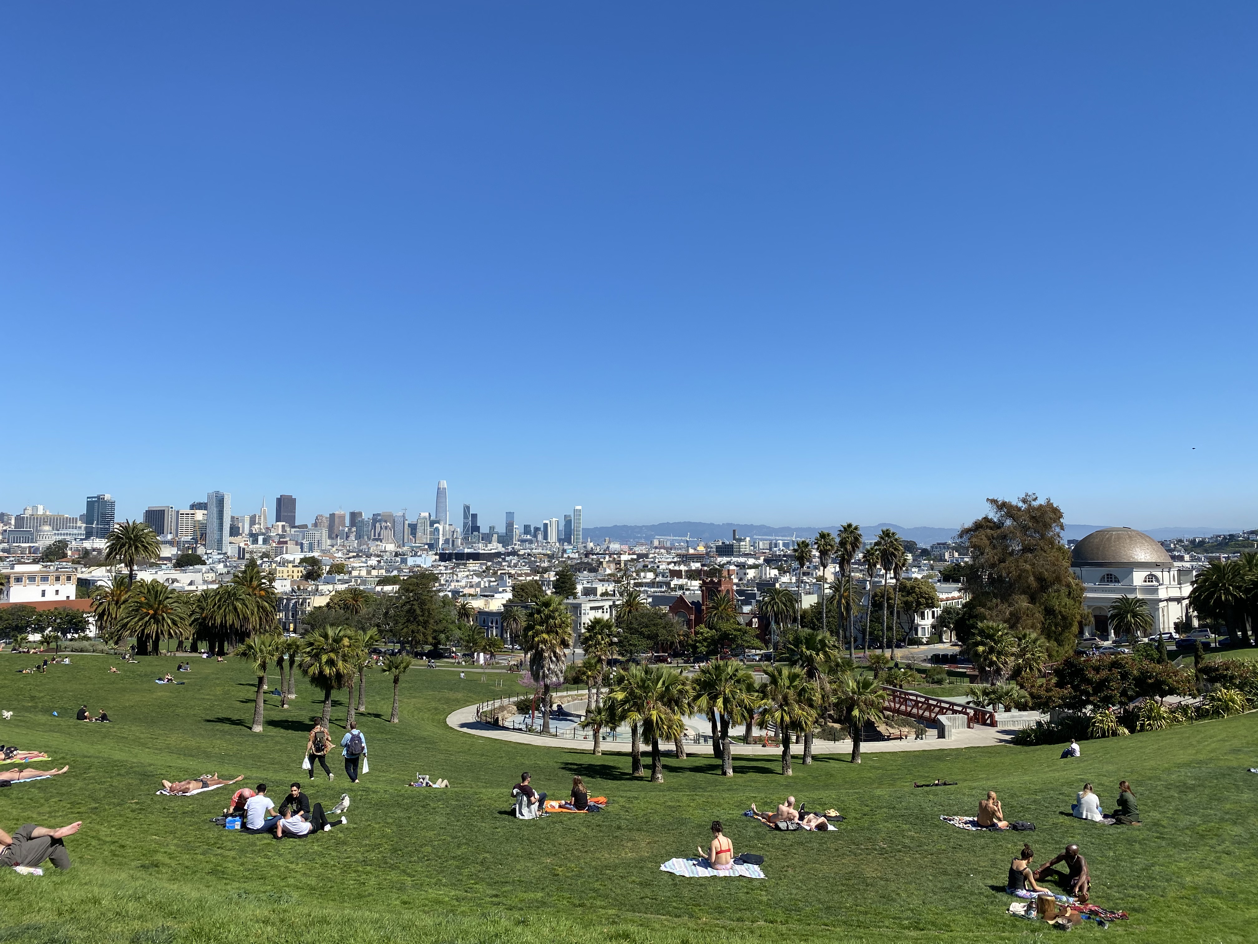 젊은 사람들이 많이 모여있는 노이밸리 지역에 있다. 샌프란시스코를 여행하는 사람이라면 한번 쯤은 꼭 방문하는 공원인데 산책을 할 만큼 크지는 않지만 돌로레스 스트릿트를 따라 노이밸리 동네를 둘러보고 파크로 돌아와서 피크닉 하면 딱 좋다. 집에서 공원까지 걸어서 25~30분 정도 걸리는데 가끔 산책 겸 다녀오기도 한다.