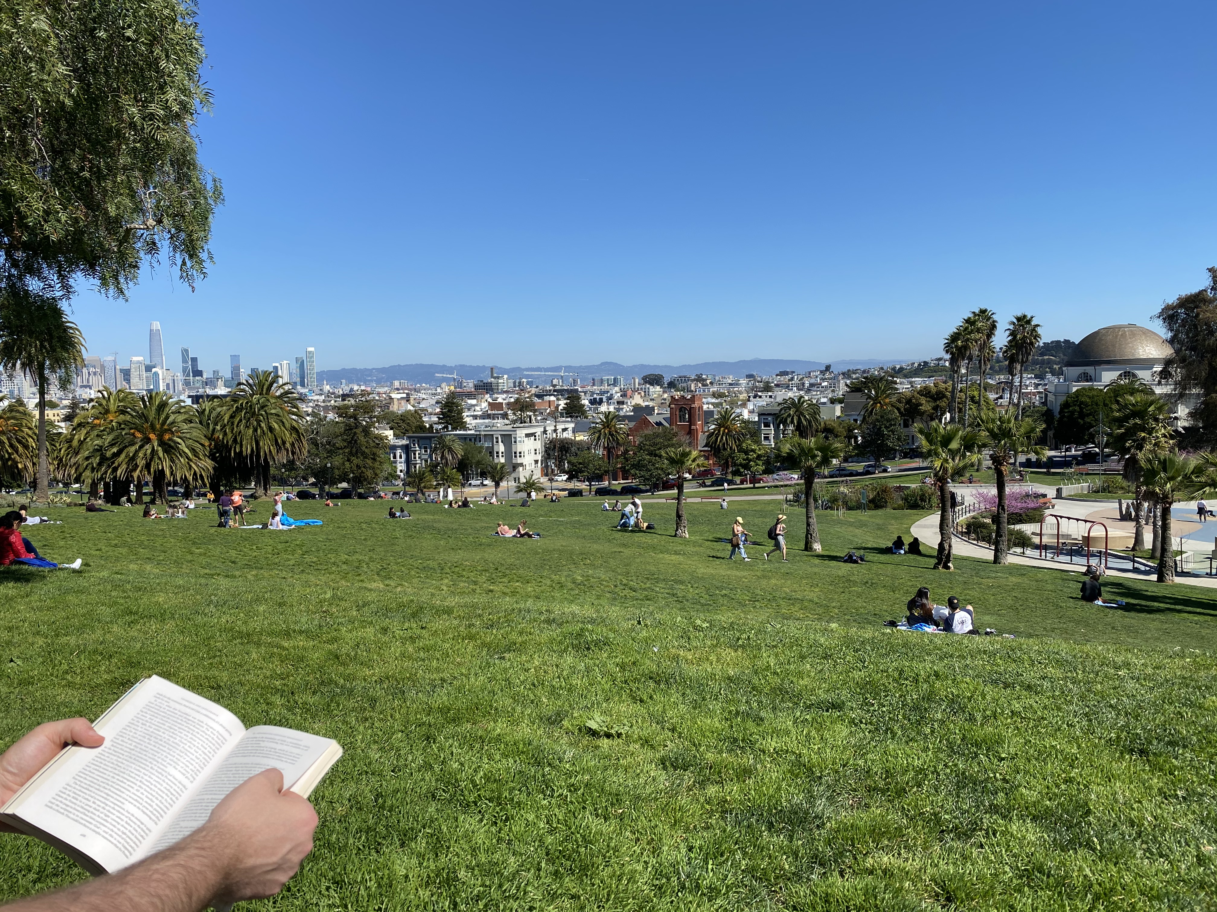 샌프란시스코에는 뷰가 아름다운 공원이 많다. 어디던지 책 하나 들고 공원에 나가서 독서를 하거나 광합성하며 누워있는 것도 좋다. 점심먹고 나른 해 질 시간에 근처 공원에 가서 산책도 하고 ‘하루 한 시간, 햇볕 쬐기’ 추천한다!