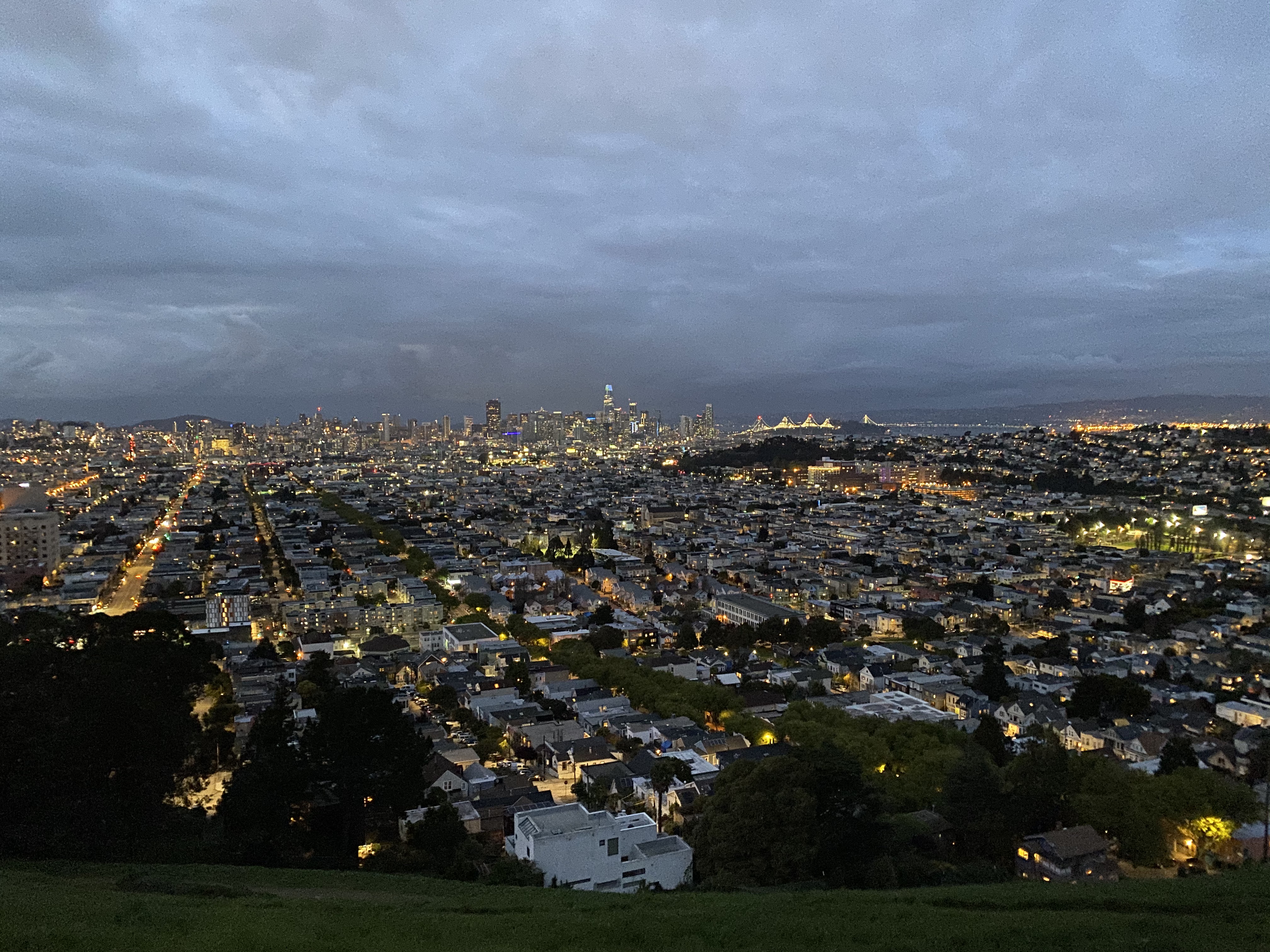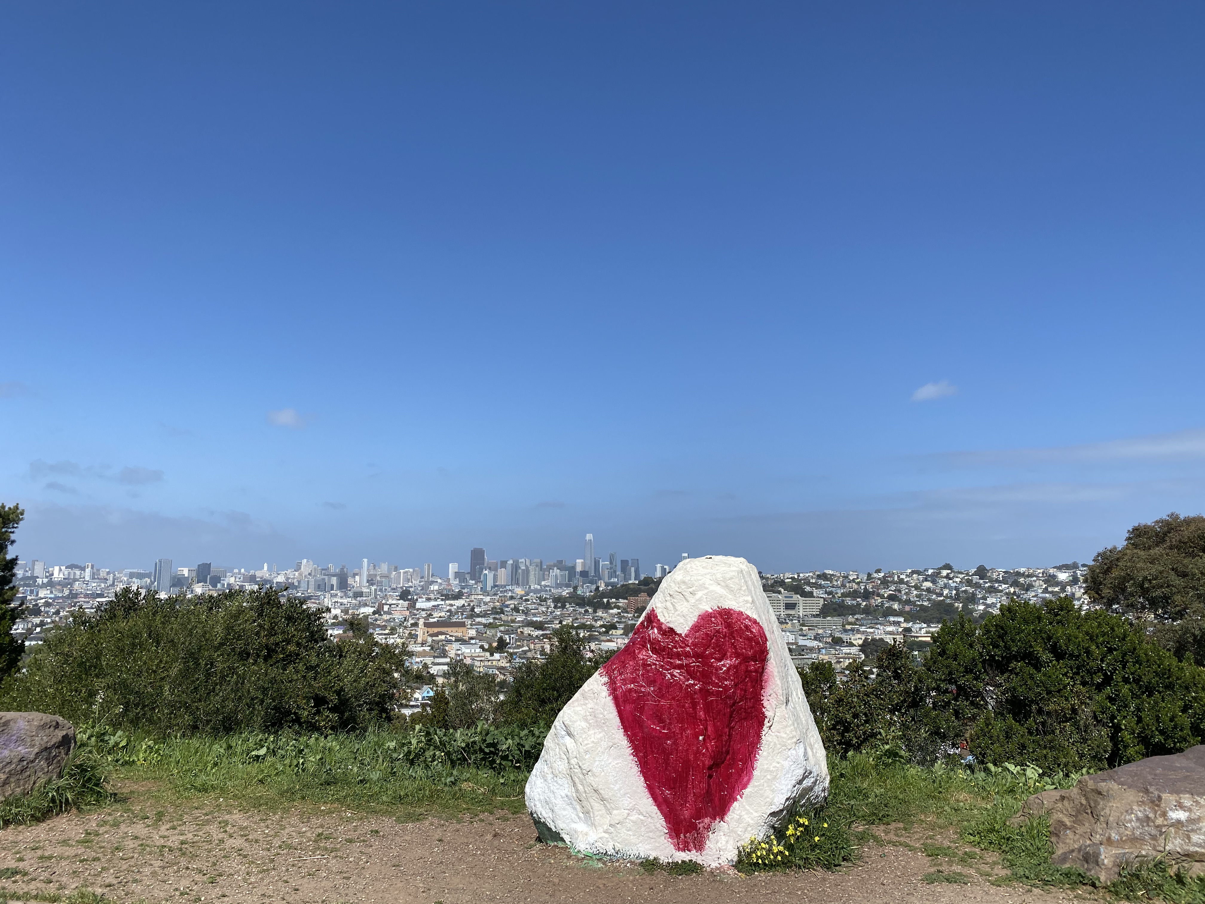버널하이츠는 360도 파노라마 뷰를 볼 수 있는 공원이다. 최근에 버널하이츠로 이사를 와서 주중에 자주 가는 산책코스이다. 저녁 선셋 시간이 가까워 지면 반려견과 함께 나와서 산책하는 현지인들을 종종 볼 수 있다. 높은 곳에서 도시를 내려다 보려면 산을 빙 두른 트랙을 따라 올라가야 하는데 경사가 미니 하이크라고 봐도 된다. 처음에는 언덕 오르는 게 쉽지 않았는데 이제는 거뜬히 올라간다. (역시 무엇이든 익숙해지면 괜찮다.) 산책 소요 시간은 약 45분. 꼭 언덕 위까지 오르지 않아도 경치를 볼 수 있고 중간중간 벤치가 마련되어 있다.