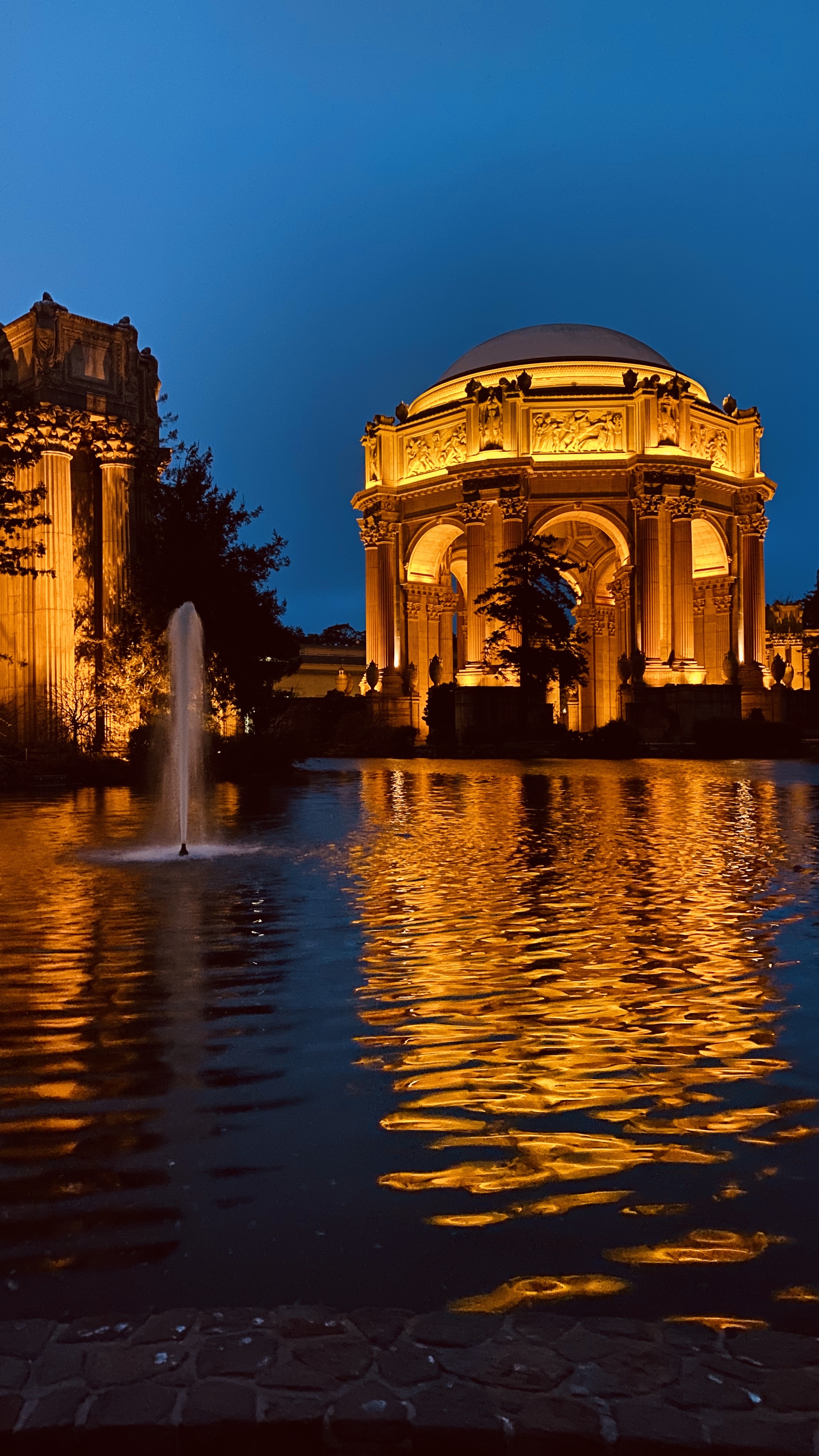 평소 결혼식 사진을 찍는 커플도 많다. 우리도 샌프란시스코에서 결혼식을 하려고 알아봤을 때 고려했던 장소 중 하나이다. 이 로맨틱한 건축물은 1915년도 파나마-퍼시픽 국제박람회 전시장으로 버나드 메이백(Bernard Maybeck) 건축가에 의해 지어졌는데 전시가 끝나고 대부분은 철거되었다. 이후 유일하게 남은 팰리스 오브 파인아트를 재건하기 위해서 주민들이 모금을 시작했고 사업가이자 자선가였던 월터 존슨(Walter Johnson) 의 통 큰 기부 ($2MM, 현 시세로는 $18MM+) 덕분에 필요한 모금을 마련하여 1965년 재건축을 진행할 수 있었다고 한다. 지금은 극장, 무용, 음악 등을 개최하는 예술 공간으로 쓰이고 있다. 재건 전에는 2차 대전 이후 전쟁무기 저장고 및 창고로, 한 때는 전화국 배송센터와 소방본부로도 쓰였다니 긴 역사가 지닌 곳이다.