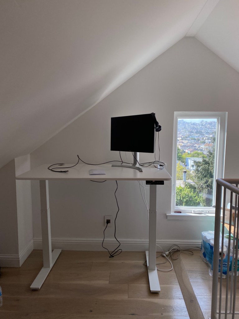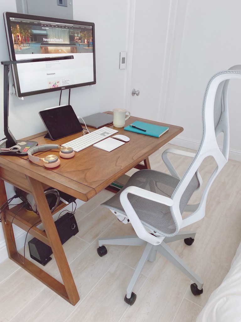 올해 장기간 재택근무가 시작되면서 우리 부부도 홈오피스에 필요한 인터넷 쇼핑을 했다. 책상에 오랜 시간 앉아 프로그래밍을 해야하는 남편이 제일 먼저 갖춘 것은 모션 데스크와 세컨드 모니터. 나는 거북목 방지를 위해 맥북거치대와 책상 정리용 트레이를 구매했다.