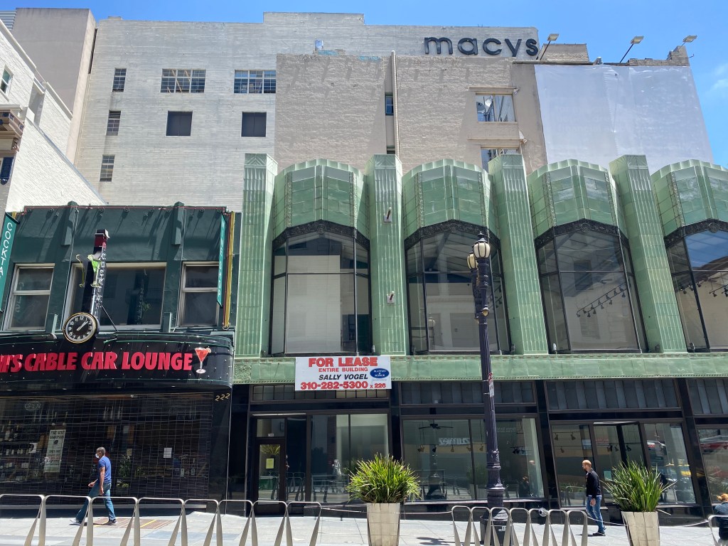 관광객 없는 유니언스퀘어. 리테일 샵이 떠난 상가 자리.