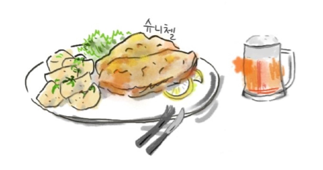 독일에서는 고기가 다 큼지막, 두툼해요.