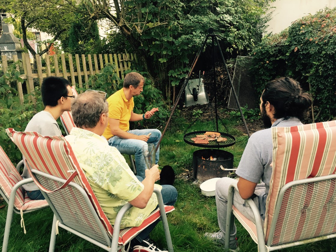 우리의 집합 아지트는 더크의 집이었다. 깔끔한 주방에 넉넉한 뒷마당이 딸린 그의 집은 사람을 여럿 불러 그 자리에서 뚝딱 음식을 만들고 뒷마당에서 한탕 벌려 먹고 놀기에 딱이었다. 그의 집엔 항상 졸리운듯 느슨하게 풀어져있는 고양이가 두 마리 있었고, 한 번도 가지치기를 안 한듯 와일드하게 자란 사과나무와, 온갖 종류의 술이 보물처럼 숨겨져있는, 영화 캐리비안의 해적에 나올법한 엔틱 목재함이 거실 한 가운데에 있었다. 가끔 쉬는날에는 그의 다 큰 아들들도 맥주 한 잔을 따라들고 모임에 조인하곤 했다.