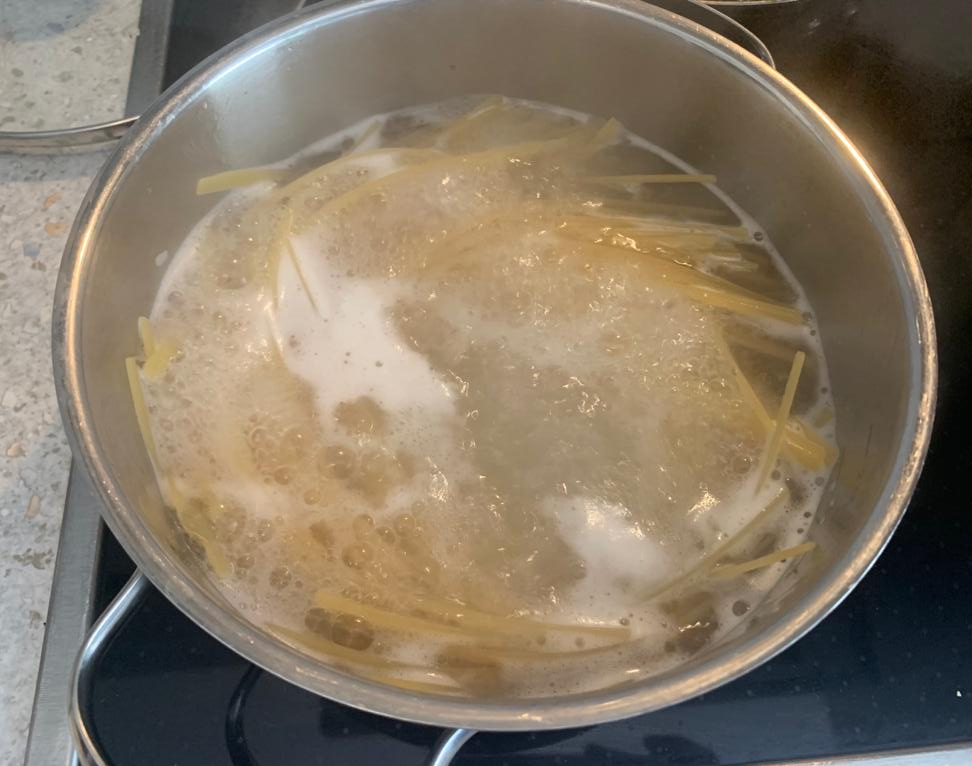 1. 끓는 물에 소금을 충분히 넣고 면을 조리법에 따라 삶는다. (소금은 물을 찍어 먹어 봤을 때 짭쪼롬 할 만큼 충분히 넣어주세요)