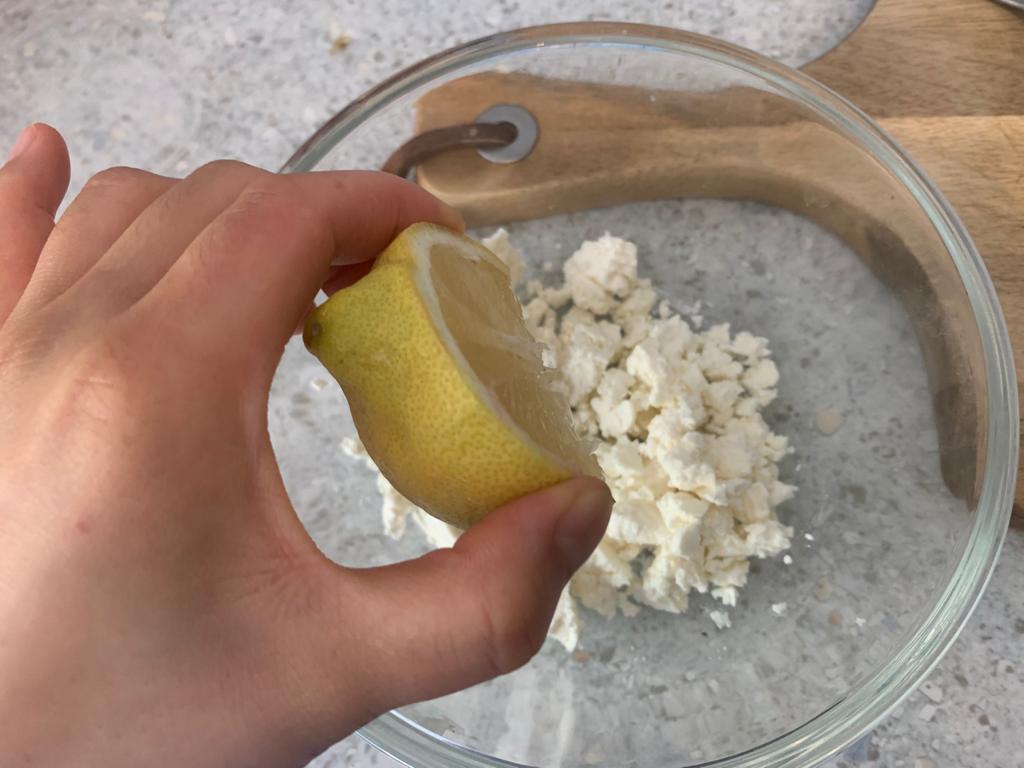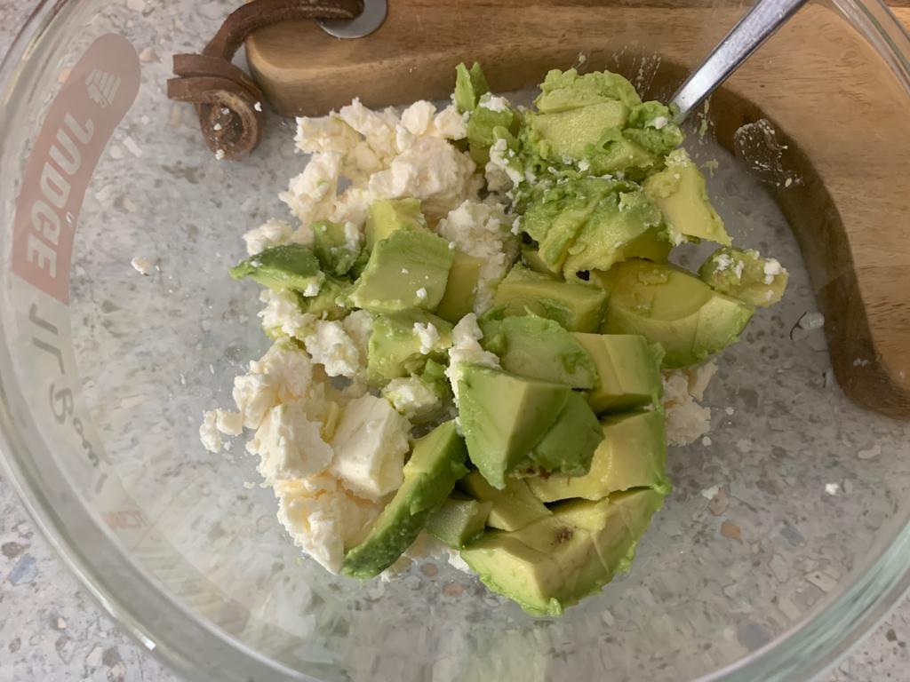 4. 페타치즈+아보카도 믹스:그릇에 페타치즈와 잘게 썰은 아보카도를 넣고 라임, 소금을 추가한다. 간을 보고 신맛, 짠맛을 조절한다.