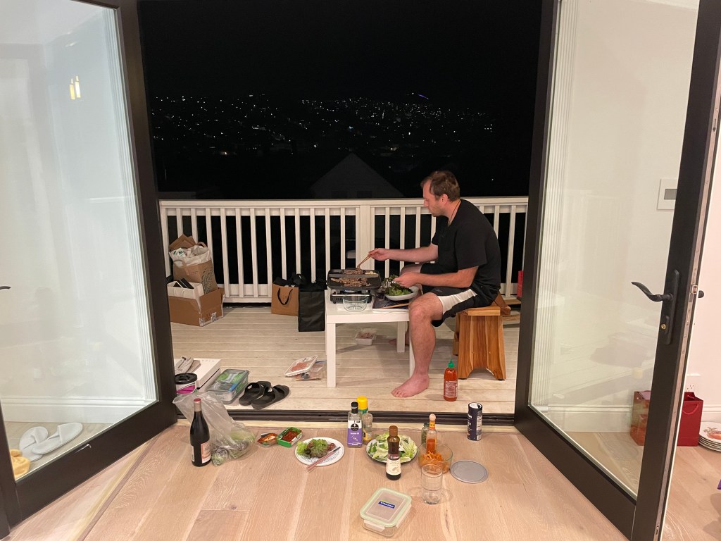 샌프란을 떠나기 마지막 날 이틀 간은 다락방에서 이불을 펴고 지냈다. 떠나기 전날 친구를 초대해서 파티오에서 BBQ 파티도 했다.