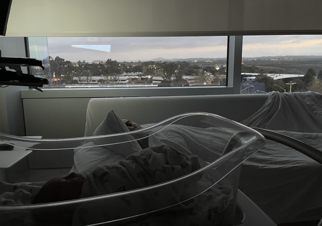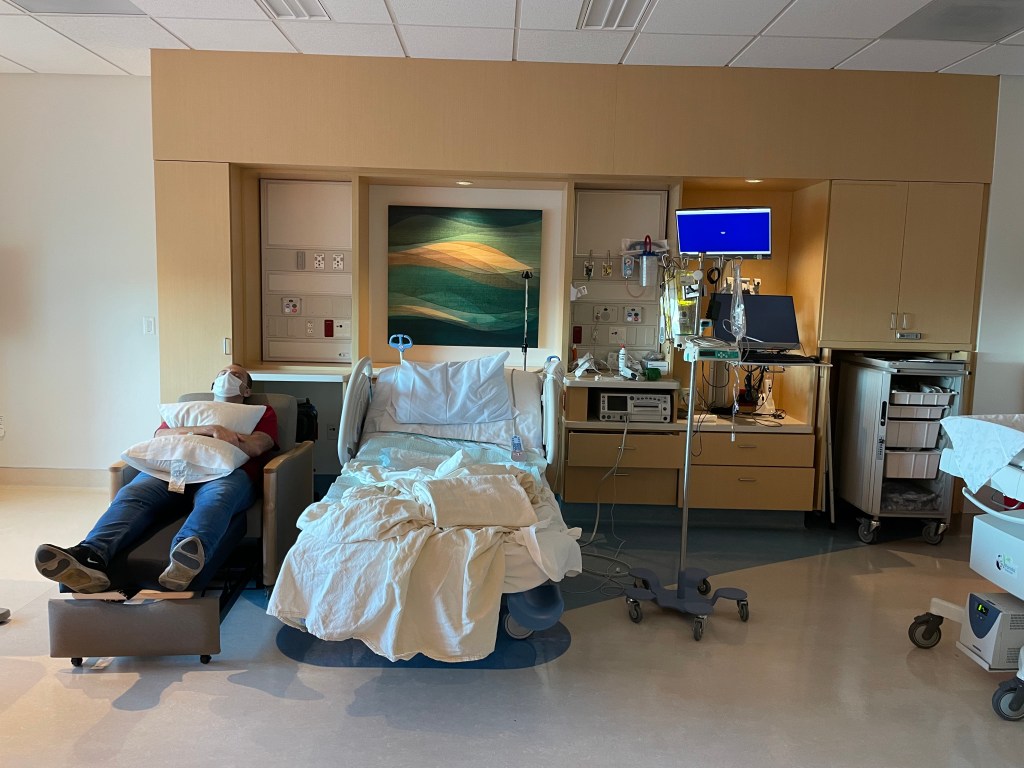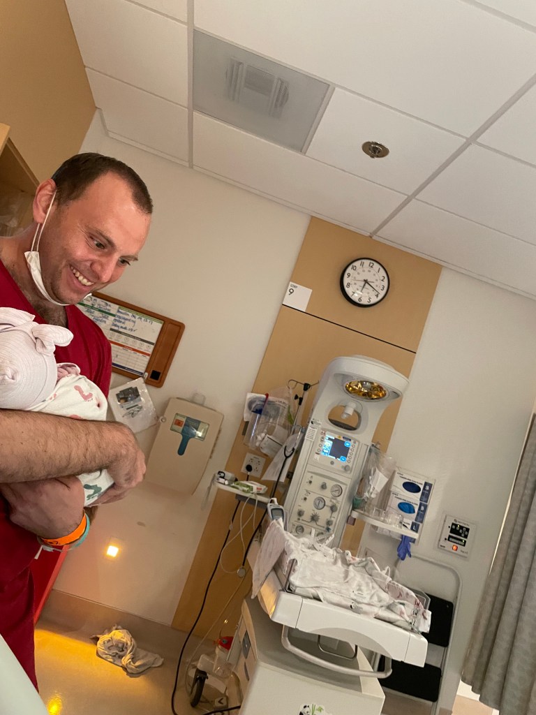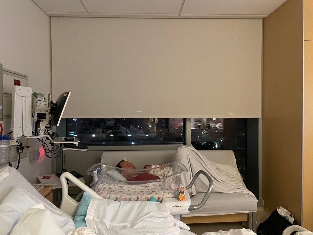 그렇게 어두운 밤 고속도로를 달려서 병원에 도착. 코로나 여파로 남편은 밖 대기실에서 기다려야 했는데 간호사가 자궁 경부가 열린 정도를 보고 입원 여부를 결정한다고 했다. 다행히 입원 확정을 받고 분만실로 안내 받았고 그 때부터 온 몸의 긴장이 풀렸다. 전날 밤에 마무리 지어야 할 과제가 있어서 한 시간 밖에 못 잤더니 금방이라도 잠이 들 것 같았는데 내가 진통을 슬슬 느끼기 시작할 즈음 남편도 옆자리에서 잠깐 눈을 부쳤다.