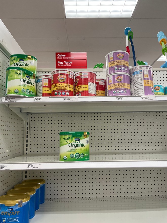 설마했던 일이 일어났다. 올해 2월부터 분유 코너에 재고가 점점 줄어들더니 이제는 특정 브랜드 제품은 솔드아웃 된 지가 꽤 됐다. 재작년 팬데믹 때 사람들이 식료품을 사재기하던 모습이 재현되는 듯하다. 지인들과 분유를 구했냐는 문자를 주고받고, 사람들이 분유 사재기를 하는 바람에 직접 마트에 가서 ID 를 보여주고 픽업해야 하는 상황이 벌어졌다. 재고가 있다는 마트를 찾아 왕복 한시간 반을 운전해서 분유 두 통을 사러 다녀온 적도 있었다. 최대 2주치 먹일 분유를 공수해오면서 다음 달을 걱정하는 상황을 겪은 지 벌써 세 달째…